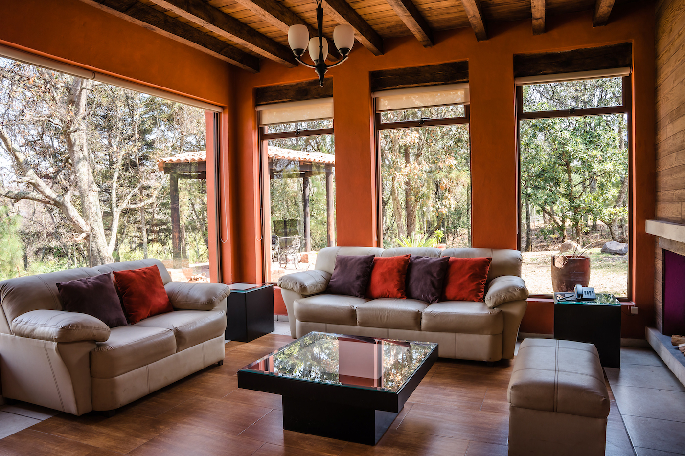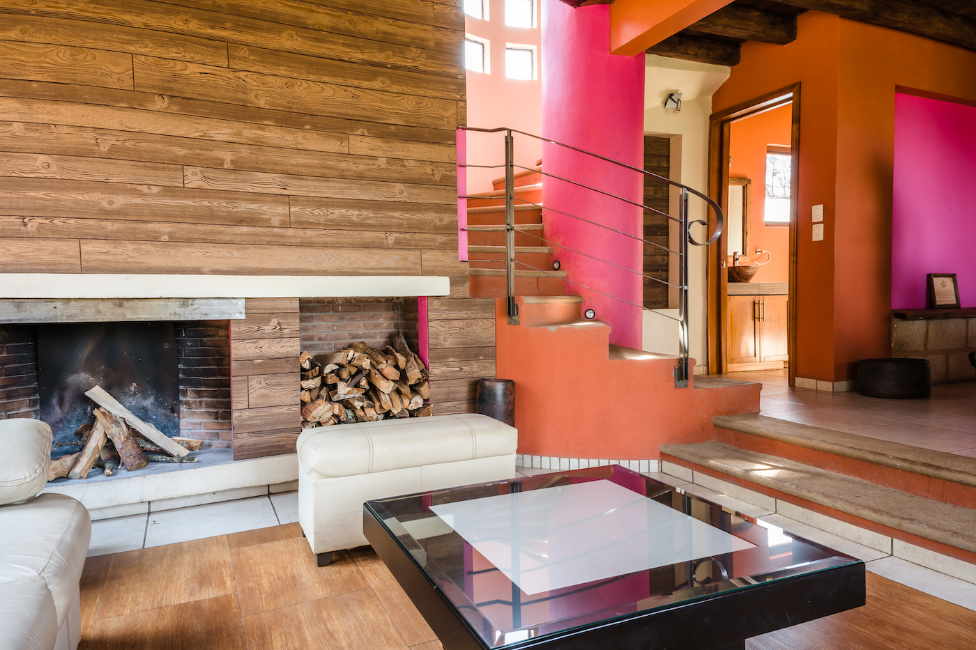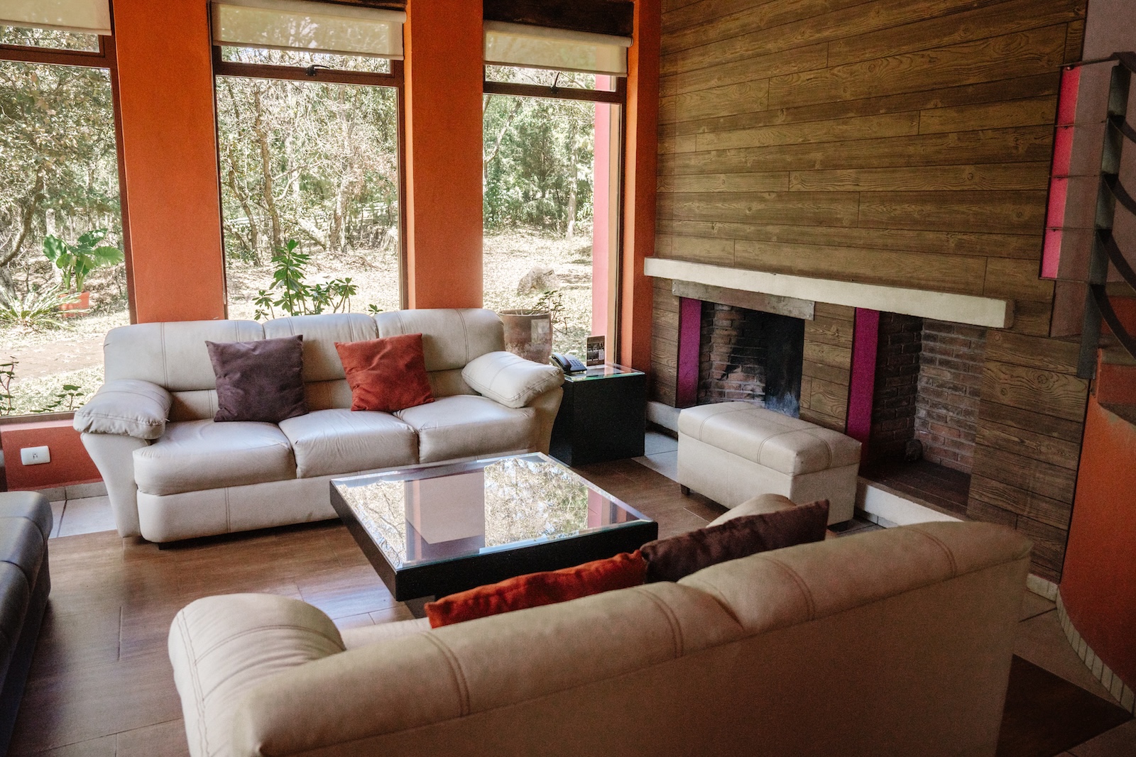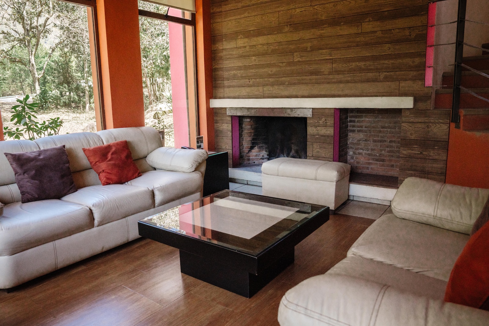 En la planta baja encontrarás una sala completa con chimenea, comedor para 6 personas, cocina totalmente equipada, medio baño y acceso a la terraza. En la planta alta se ubican dos recámaras: la principal con cama King, chimenea, baño completo y acceso a terraza con vista al lago, y una segunda recámara con cama matrimonial, sillón cama, chimenea y también baño completo y acceso a la terraza.