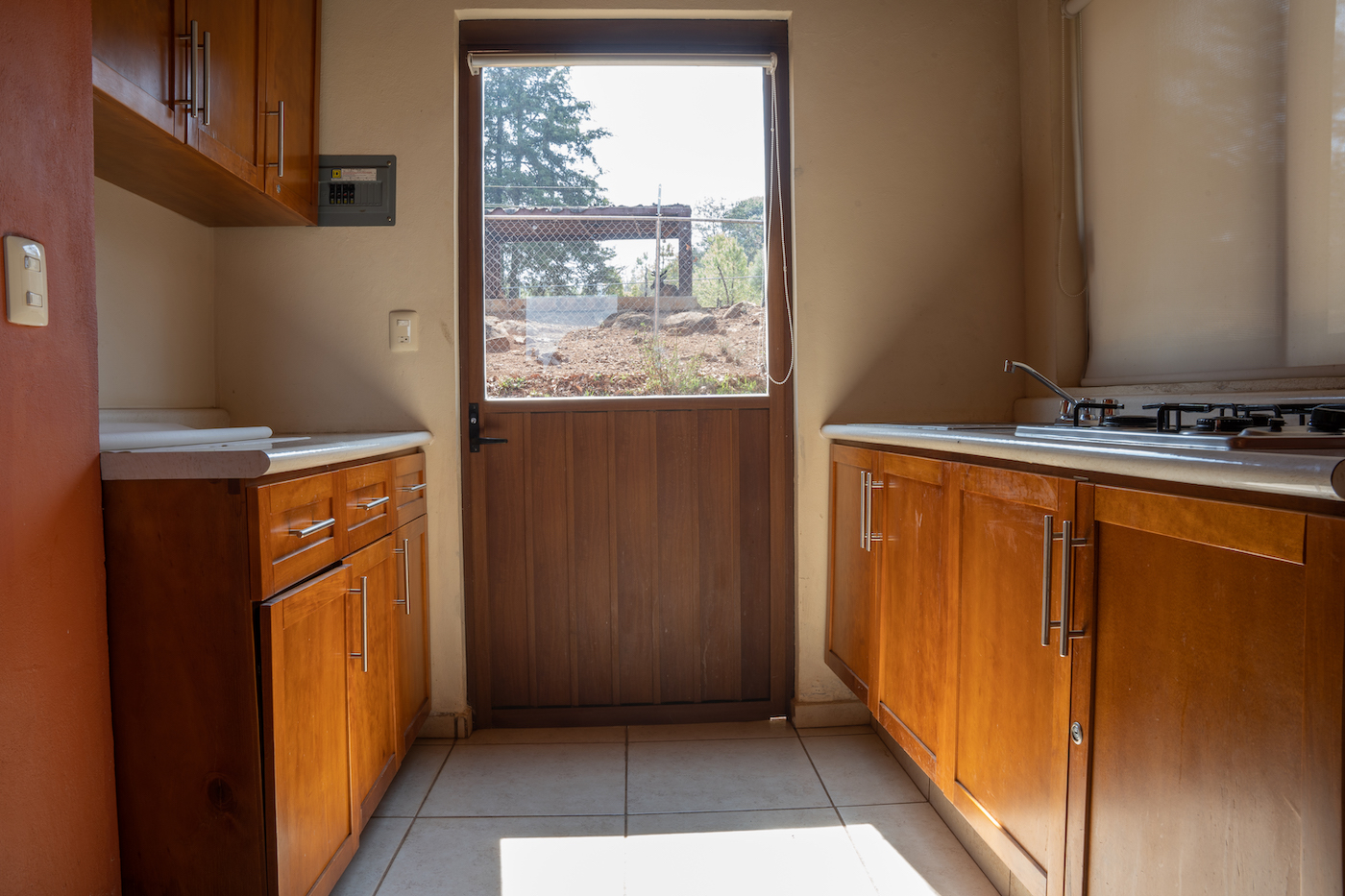 La cocina incluye estufa de 4 quemadores, frigobar, microondas, vajilla, sartenes, ollas, tarja y escurridor. Además, la cabaña cuenta con agua caliente, estacionamiento, asador, fogatero, quiosco para carne asada y mobiliario de terraza para disfrutar del exterior.