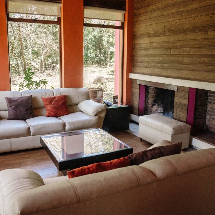 - Servicios Agua caliente en regadera, Asador, Leña para fogata, Parrilla de gas, Terraza con mobiliario